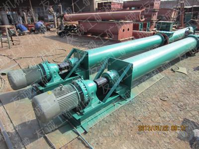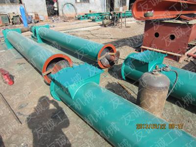 管式螺旋輸送機一般情況下用于傾斜角度的輸送,管式螺旋輸送機是利用旋轉(zhuǎn)的螺旋將被輸送的物料沿固定的機殼內(nèi)推移而進行輸送工作,頭部及尾部軸承移 殼體外,吊軸承采用滑動軸承設(shè)有防塵密封裝置,軸瓦一般采用粉末冶金,輸送水泥采用毛氈軸瓦,吊軸和螺旋軸采用滑塊連接。