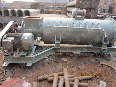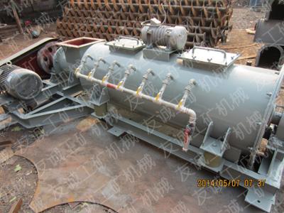 單軸粉塵加濕攪拌機(jī)主要用于電力,冶金等行業(yè)的多管除塵器,電除塵器,重力除塵器及其它親水性好,粘性較差物料的排放處理、通過本機(jī)的攪拌加濕,使干料變?yōu)榫鶆蚨睗竦奈锪希?避免了卸料和運(yùn)輸過程中產(chǎn)生的二次揚(yáng)塵問題、本設(shè)備安裝在灰?guī)?,灰斗下部,由葉輪料機(jī)把干灰均勻地輸入到機(jī)內(nèi),通過旋轉(zhuǎn)的帶螺旋葉片的棘輪把干粉灰攪拌打散,同時加入適量的水進(jìn)行強(qiáng)制混合,并將達(dá)到預(yù)訂濕度的混合料推向出料口排出,達(dá)到加濕排放、本設(shè)備由均勻供料,葉片輸料加水混合擊打加濕構(gòu)成,該設(shè)備結(jié)構(gòu)簡單,密封良好,處理量大,攪拌扭矩大等特點。